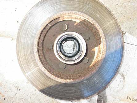 | 最後の仕上げとしましてプレロード調整ですが、センターナットを最初はグっと締め付けて(締め付けトルクは300Kg-Cm)締め付け後、数回転ローターを回しナックルスピンドルの先端をプラスチックハンマーで軽く叩きベアリングを落ち着かせます。 次に指で回る程度にセンターナットを緩めバネ計りが有る場合は、その時にハブボルトにバネ計りを水平に引っ掛けローターの回り始めのトルク(オイルシールの抵抗)を測定します。 測定が終わりましたら、そこからナットをモンキー等の工具を使用し、手を工具の端っこを軽く持ち、締め付ける力をあまり加えずに抵抗が出る程度まで締め付けます。(締め付ける初期は、軽い抵抗が出始めて 曲線を描く様に抵抗が増大し、工具に締め付ける力をあまり加えずに回しますとナットの回転が止まります。) そこのナットの位置を覚えておきナットを少しだけ緩め、また先ほどの位置までナットを締め付け(2,3回転ほど繰り返しベアリングを落ち着かせます。)最後に、そこから気持ち程度に、ほんのチョットだけ、ちょんと締め付けます。 バネ計りが有る場合は、再びハブボルトにバネ計りを水平に引っ掛け回り始めのトルク(オイルシールの抵抗とベアリングの抵抗)を測定し、オイルシールの抵抗aに対してベアリングの抵抗bを0から6Kg加えた値の範囲内に収まっているかを調べます。(オイルシールの抵抗が1kgの場合は全体のプレロードは1kgから7kgの範囲内に収めます。) 最後にキャリパーを取り付けタイヤを仮付けを行い、タイヤをドンドンと手で叩き、そして回転させタイヤの上下を前後に揺すりガタが無い事を確認してから割りピンをはめ込みベアリングセンターキャップをはめ込み終わりです。(ガタが有る場合はセンターナットを気持ち程度に、ほんのチョットだけ締め込みガタが無くなるまで行いガタが無くなりましたら、そこから気持ち程度に、ほんのチョットだけ、ちょんと締め込み終了です。) |